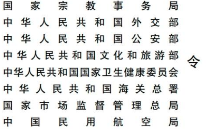 《伊斯兰教朝觐事务管理办法》已经国家宗教事务局按规定程序审议通过,并经外交部、公安部、文化和旅游部、国家卫生健康委员会、海关总署、国家市场监督管理总局、中国民用航空局同意,现予公布,自2020年12月1日起施行。