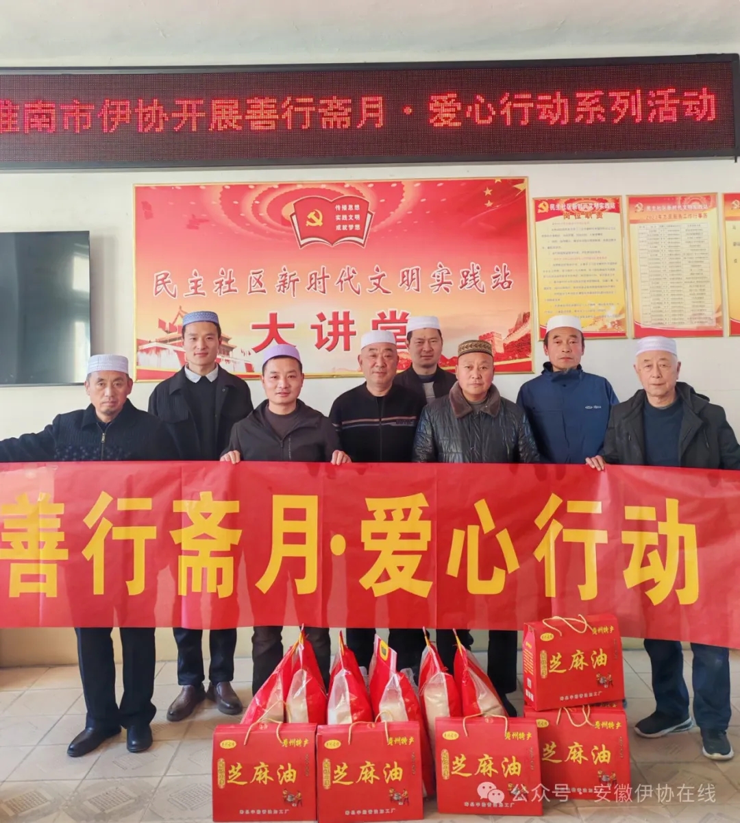 淮南市伊斯兰教界通过多种形式开展慰问,市伊协对基层教职人员进行集体慰问;赖山集清真寺走访10余户高龄老人及少数民族困难家庭;九龙集清真东寺许占军阿訇联合多坊清真寺开展关怀行动。活动累计募集物资资金3万元,惠及群众80余人。